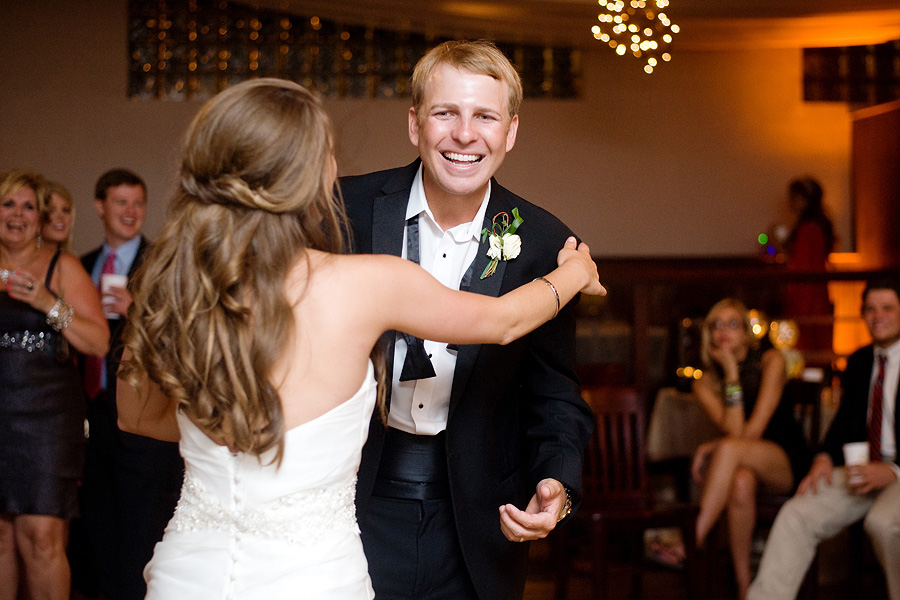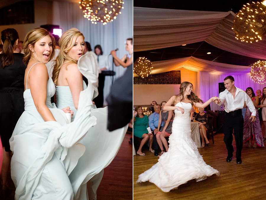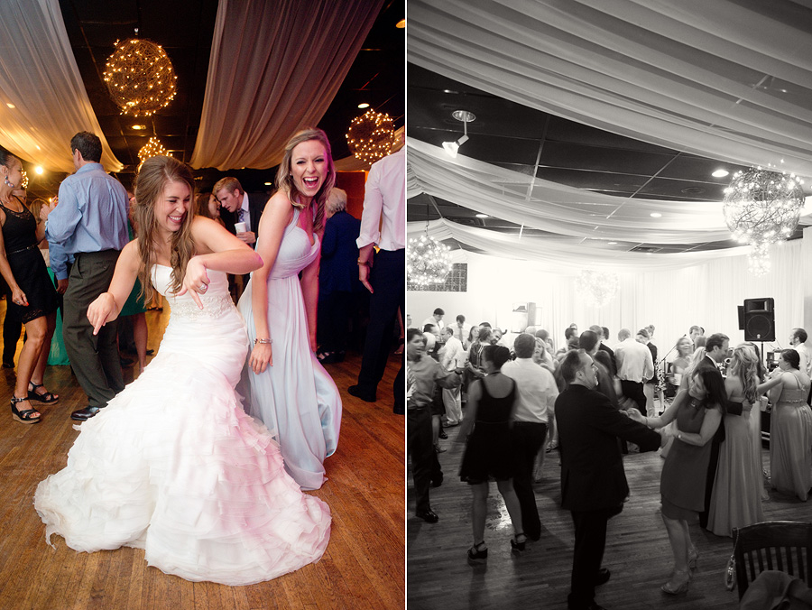 The reception was lively and immersive, with candlelight and overhead string lighting transforming the room into an intimate evening setting. Tables were arranged to encourage connection, while the dance floor became a natural gathering point as the night progressed. Music, movement, and close proximity gave the celebration momentum without overwhelming its elegant foundation.